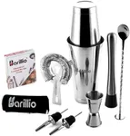 Barillio Boston Shaker Set - Stainless-Steel, Weighted, Martini Cocktail Shaker Set w/Strainer & Mixer - Mixology Bartender Kit - Bar Set for The Home - 9-pc Drink Shaker Set - Bar Tools - Silver