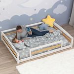 Twin Over Full Bunk Bed with Storage Shelves, LED, Charging Station and a Drawer, Solid Wood Bunk Bed for Kids, Teens, Adults (White/LED)