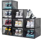 12 Pack XX Large Shoe Organizer Storage Boxes for Closet, Modular Space Saving Shoe Boxes Clear Plastic Stackable Sneaker Containers Display Case with Lids, Dark Black