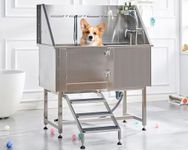 Flying Pig 38" Stainless Steel Dog Cat Pet Grooming Bath Tub (w/Faucet, Sprayer, Shampoo Rack, Hair Trap)