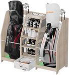 GoSports Premium Wooden Golf Bag Organizer and Storage Rack - Black