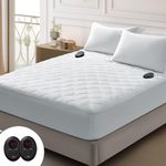 Heated Mattress Pad King Size Quilted Zone Heating Electric Bed Warmer Luxury Comfort Heat Mattress Pad Cover Dual Controller(10 Heat Setting | 1-12 Hours Auto Shut Off | with 8-21 Inch Deep Pocket)