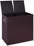 Best Choice Products Large Double Laundry Hamper with Lid, Natural Handwoven Water Hyacinth, 2 Sections w/ 2 Machine Washable Linen Liner Bags, Portable, Handles - Natural