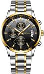 OLEVS Watch for Men Diamond Business Dress Analog Quartz Stainless Steel Waterproof Luminous Date Two Tone Luxury Casual Wrist Watch Blue