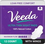 Cora 100% Organic Cotton Topsheet Pads | Ultra Thin Period Pads with Wings | Overnight Absorbency | Ultra-Absorbent Sanitary Pads for Women (36 Count)
