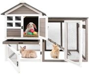 RUNSHED Rabbit Hutch 2-Story Bunny Cage Small Animal House for Indoor Outdoor Wooden Rabbit Cage with No Leak Tray Waterproof Roof (56.8" L x 22.5" W x 34.7" H, Grey Blue&White)