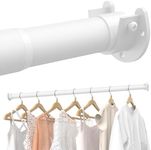 Closet Rods for Hanging Clothes, 17 to 69 Inches Stepless Adjustable Metal Closet Rod, 1.3 Inches Heavy Duty Clothes Hanging Rod for Closet Wardrobes Laundry RV, White