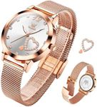 BOFAN Small Gold Watches for Women Easy Read Ladies Quartz Wrist Watches with Gold Stainless Steel Expansion Band,Waterproof.(6.10in-6.89in)