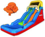 Banzai Rapid Falls Water Slide, Heavy Duty Inflatable Backyard Water Park w/ Dual Waterslides, Splash Pool, and Sprinklers, for Ages 5-12, Multicolor
