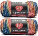 Red Heart Super Saver Bitty Stripe Sunset Stripe Yarn - 2 Pack of 10oz/283g - 100% Acrylic - #4 Worsted (Medium) - 515 Yards - Knitting/Crochet